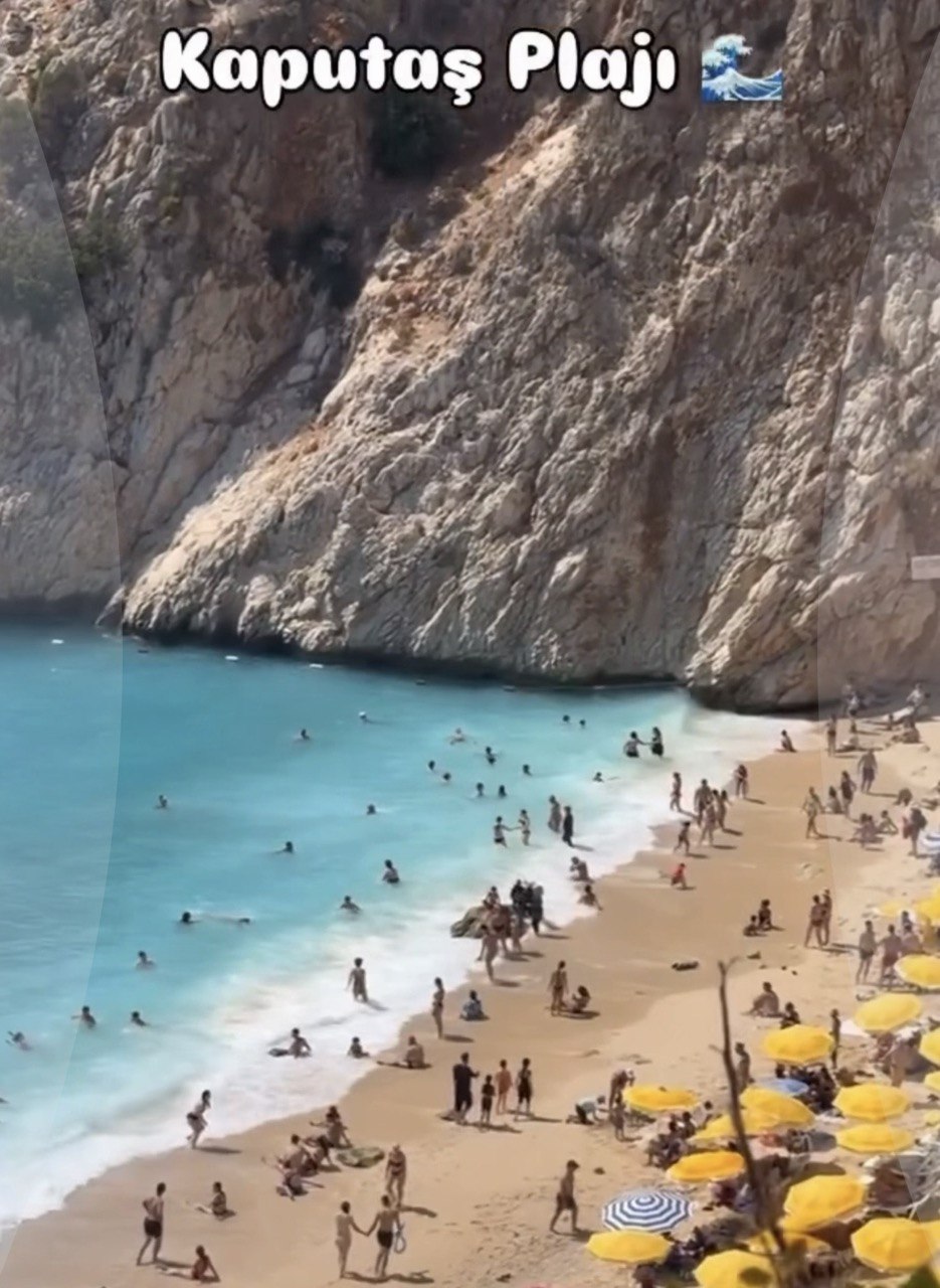 Один із найкрасивіших пляжів Туреччини. Він розташований між високими скелями, а вода має яскравий бірюзовий колір. До пляжу веде довгий спуск сходами, але краєвид і море того точно варті.
